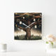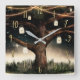 Relógio Quadrado Árvore Noturna Rústica com Luzes e Potes de Pedra