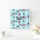This retro Atomic Pink and Grey Pattern Square Acrylic Clock is so awesome it will have you saying, “I can’t believe it’s not barkcloth!” The vintage inspired design is a new take on mid century modern styles. It offers all of the fun of finding a vintage product without having to schlep through antique stores and flea markets. Just when you think it can’t get more perfect, you learn that this whimsical design with its kitschy off kilter shapes in colors of pink, charcoal grey, black, and light grey even offers the option of customizing the background color. We’ve put it on a lovely shade of aqua, but a quick change of the background color, and… Presto! Change-o! The product has gone from subdued to daring! There are dots, starbursts, and diamonds in this piece of modern art. This homage to the 1950s will thrill your retro loving soul.