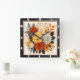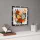 Este relógio de parede quadrado apresenta um buquê espantoso de florais em laranjas ricas, amarelos e cremes. O arranjo apresenta rosas, dahlias, e várias folhagens de outono, criando um belo e vibrante design natural. Este elegante relógio adiciona um toque de sofisticação sazonal a qualquer sala.