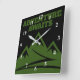 Aventura aguarda o pico da montanha caminhando pelo relógio da parede quadrada. Relógio de parede personalizado com números e citações inspiracionais da natureza. Cores pretas e verdes ou personalizadas. Legal decoração para casa, escritório, compro, negócios, cabana e muito mais. Ideia divertida de presente de aniversário para amigos, família, colega de trabalho, caçador, caminhoneiro, camper etc.