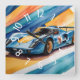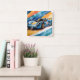 Relógio Quadrado Azul Race Car Aquarela Amarelo