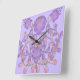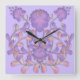 Relógio Quadrado Azulejo de vidro 3D Flores líquidas violeta gzhel