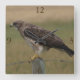 Relógio do Falcão-de-swainson. Um belo falcão-de-swainson empoleirado em uma velha estaca de cerca. O falcão-de-swainson é apenas uma das muitas variedades de aves de rapina que migram ou passam o verão no sul de Alberta, Canadá.
