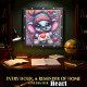 This enchanting square wall clock features a vibrant digital illustration of a cheerful baby elephant with large, sparkling blue eyes. The elephant is dressed in a colorful, patterned knit beanie and a matching striped scarf, holding a small sign that reads "I Love You" with a bright red heart. The background is a dense, psychedelic tapestry of swirling patterns, multi-colored hearts, and whimsical stardust in shades of purple, blue, and pink. The artwork is set within a modern black wood-grain frame with bold white numeric markers for easy readability. This functional home accessory serves as a perfect decorative piece for nurseries, playrooms, or as a heartfelt gift for Valentine Day. Its high-detail composition and warm, affectionate theme provide a joyful focal point for any interior space.
