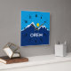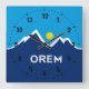 Relógio com um design com a bandeira de Orem, Utah. Uma bandeira azul, branca e amarela com picos de montanha e o sol no centro
