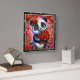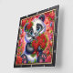 Este adorável relógio de parede quadrado apresenta uma ilustração digital encantadora de um filhote de panda fofo com grandes olhos azuis brilhantes. O panda está usando uma coroa de rosa vermelha vibrante e está segurando alegremente um enorme buquê de rosas vermelhas escuras amarradas com uma fita combinando. O fundo é uma explosão mágica e de alta energia de tons rosa e vermelhos, repleto de corações flutuantes, poeira estelar cintilante e padrões florais caprichosos. A obra de arte é emoldurada por uma moldura moderna de textura de madeira preta com marcadores numéricos brancos em negrito para uma leitura fácil e clara do tempo. Esta peça funcional de decoração de casa é um presente perfeito para amantes de pandas, Dia dos Namorados ou como um charmoso complemento para uma nursery ou quarto. A pal