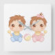 Relógio Quadrado Bebês gêmeos Garoto e Garota