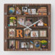 Relógio Quadrado Biblioteca da antiguidade da colagem da foto de