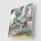 Relógio Quadrado Bicicleta de Algodão Azul com Cesta de Flor de Pri