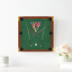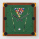 Para tubarões piscina e jogadores de bilhar, gráfico de mesa de piscina com bolas empilhadas e dois paus de piscina.