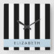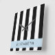 Relógio Quadrado Black and White Stripes, Stripes, Linhas, Seu Nome