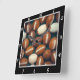 This football-themed wall clock features a playful pattern of sports balls enclosed in a sleek black frame. Designed for fans of the game, it adds a bold yet stylish statement to any space—perfect for bedrooms, game rooms, or sports-inspired interiors. It is highly customizable, allowing for changes to the colors of the clock's border and numbers (1-12) to match specific team colors. This makes it an ideal personalized gift or decor for sports fans, football teams, or themed game rooms.
