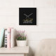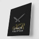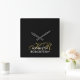 Personalized modern elegant refined manly square wall clock, personalizable customizable with monogram, initial letters and name. Classy black background, stylish gold calligraphy script handwritten initial letters, and black serif typography for the name. Gentlemen appropriate, useful wall art decoration item. Premium look, neutral, monochrome, minimalist, simple, monogrammed, easy to match in any ambient. Decorate your living room, bedroom, dining room, even kitchen or make a thoughtful custom gift under 40 dollars for him. Elevate the aspect of a men home, the home office, or the professional business workplace. Suitable for many occasions and celebrations, like birthday, Father’s Day, Christmas, graduation, anniversaries, even retirement gift. Also a beautiful aesthetic housewarming, new homeowner gift, or present for a perfect host that loves decorating with style. A great ideal to be used when staging a house for sale, to attract potential profitable buyers.
