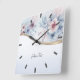Relógio Quadrado Bloco de Parede Floral Cor Azul Rosa-Rosa