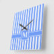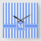Relógio Quadrado Blue Modern Stripe com Monograma