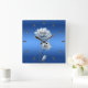 Relógio Quadrado Blue Watercolor Flowers Wall Clock