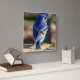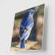 O pulso de disparo de parede com um bluebird masculino que mostra fora a é penas de cauda azuis bonitas. Grande presente para um amante do pássaro! Fotografia de Digitas por Sue Melvin