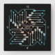 Este padrão de relógio de parede inspirado no asteca tem uma vibração Chic Boho com um arranjo geométrico de setas em torno de uma forma brilhante de sol. Esta versão tem um esquema de cores de gradiente que varia de turquesa a branco e cor-de-rosa-claro na cor de fundo de sua escolha (o preto mostrado aqui é opcional). Procure ID748 para ver outras opções de cores e produtos com este padrão.