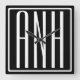 Relógio Quadrado Bold Modern 3 Iniciais Monograma | Branco A Preto