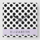 Relógio Quadrado Bolinhas Pretas e Brancas, Pontas, Seu Nome