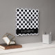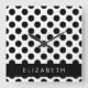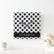 Relógio Quadrado Bolinhas Pretas e Brancas, Pontas, Seu Nome