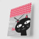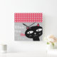 Relógio Quadrado Bolinhas Rosa Gato Preto-Grito Adicionam Seu Nome