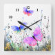 Relógio Quadrado Borboletas coloridas voando na natureza - alegria
