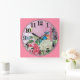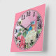 Relógio Quadrado Borboletas e flores de aves