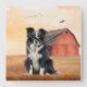 Relógio Quadrado Border Collie Dog and Red Barn Ranch