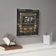 Celebre 50 anos de amor e devoção com este design impressionante. Um rico fundo preto prepara o cenário para uma moldura dourada ornamentada, adornada com floreios intrincados que irradiam elegância. O texto em negrito "50º Aniversário" brilha no centro em ouro luxuoso, complementado por acentos cintilantes e explosões de estrelas delicadas para uma sensação comemorativa. Perfeito para homenagear um marco atemporal com sofisticação e beleza.