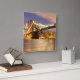 Relógio Quadrado Brooklyn Bridge e Manhattan à noite.