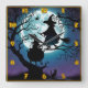 Relógio Quadrado Bruxa voando à noite sob a lua de cheio