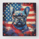 Relógio Quadrado Buldogue Francês e Bandeira Americana Incomodada