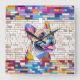 Relógio Quadrado Bulldog Francês - Frenchie - mosaico colorido