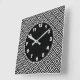 relógio de parede quadrada com padrão de diamante de eco preto e branco