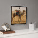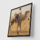 Um camelo two-humped peludo que veste seu rico bordou a sela que está pacientemente no deserto.