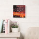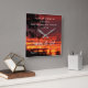 Este relógio de parede inspirador mostra um pôr do sol brilhante da Califórnia e o verso Bíblia Psalm 65:8 que diz, "A Terra toda está cheia de admiração pelas vossas maravilhas. onde amanhecer, onde a noite desaparece, você abre músicas de alegria!"