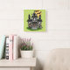 Relógio Quadrado Casa assombrada do Halloween e bruxinha verde