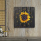 Um relógio de parede no estilo russo do país com um girassol de ouro amarelo sobre um fundo de madeira marrom-escura. +++++++++++++ Personalize-o com seu nome de família e texto! +++++++++++ Pode ser um belo presente de manutenção para o seu aniversário de família, casamento, chá de casal, aquecimento doméstico.