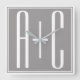 Relógio Quadrado Casais Initails ou Outro Texto | Cinzas brancas