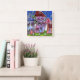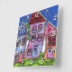 Arte de Marta Harvey. Essa peça foi criada como uma colagem de papéis pintados (lixo eletrônico), montada para formar essas pequenas casas fundas. Uma vez reunidas, as janelas e outros detalhes foram adicionados para terminar a peça.