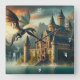 Relógio Quadrado Castelo antigo sob ataque de um Dragão Voador