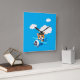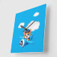 A charming cartoon cat pilot glides through the vibrant blue sky, weaving gracefully between fluffy white clouds. His orange fur stands out against his big blue eyes as he flies a sleek blue plane, complete with a classic blue pilot hat that matches the sky.