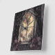 A espantosa janela da catedral gótica com trapaça de ornamentado, luz divina ouro e rosas roxos. Perfeito para a academia escura e amantes da arquitetura gótica buscando elegância romântica sagrada.