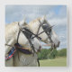 Um pulso de disparo com numerais romanos com retrato de um par de harmonização de cavalos de esboço cinzentos de Percheron em uma competição ploughing, vestindo chicotes de fios com os colares e os faróis intermitentes azuis e vermelhos, contra um contexto dos campos e o céu azul com nuvens macias. Fotografia pelo ruralfrance.