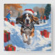 Relógio Quadrado Cena de Neve Festiva de Natal do Conhound Bluetick