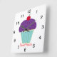 Relógio Quadrado Cereja doce no Cupcake de Glacé roxo superior