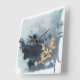 Cerulean e Dourado I de Victoria Borges. Imagem com aspecto de abrasão com tons azuis profundos embelezados com speck de folha de ouro.