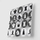 Relógio de padrões de xadrez preto e branco. Um padrão de peças de xadrez na moda com ícones de rei, rainha, torre, cavaleiro, bispo e peão de xadrez em um relógio de padrão de xadrez. Este legal relógio de xadrez é totalmente personalizável, adicione seus textos e imagens.