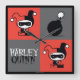 Relógio Quadrado Chibi Harley Quinn Checker Patterno